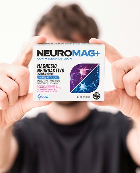 NEUROMAG+ aporta magnesio biodisponible que contribuye al metabolismo energético normal y al correcto funcionamiento del sistema nervioso y muscular.